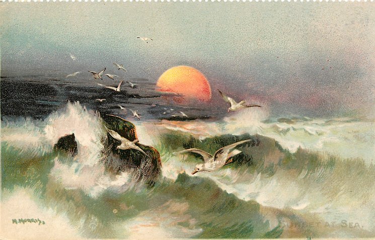 perforated cards from postcard painting book BY SEA AND SHORE, see ephemera database CHROMOGRAPHED IN BAVARIA