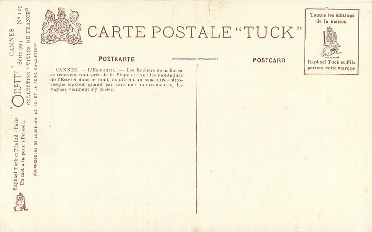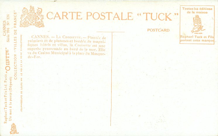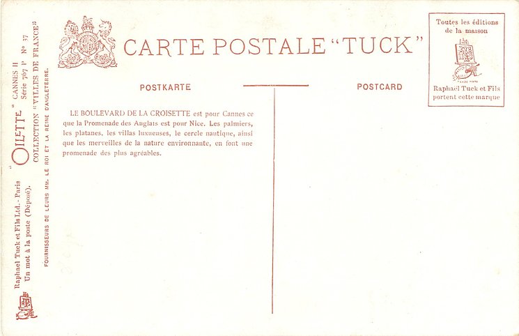 OILETTE, UN MOT A LA POSTE (DEPOSE), with or w/o suffix P, with or w/o inset numbers, 3 backs, same images English backs OILETTE-WILD-WILD-WORLD 7448 CANNES SERIES II, German backs 227 RIVIERA SERIE CANNES