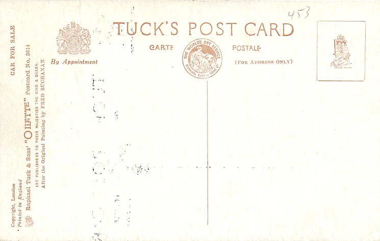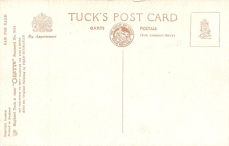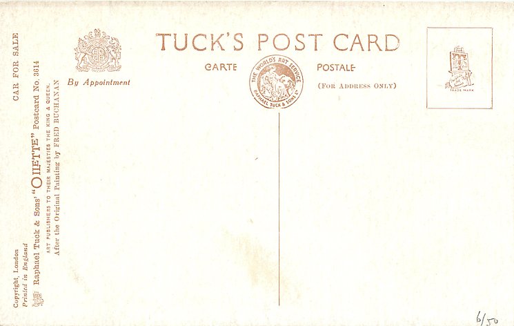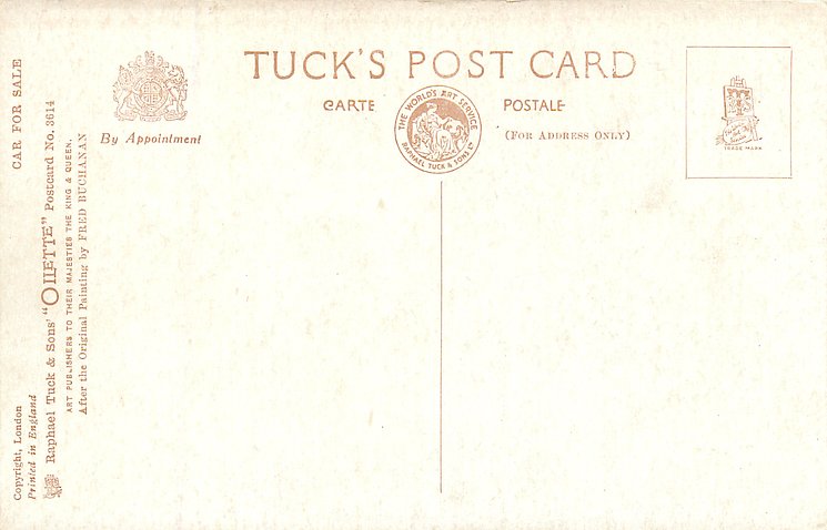 OILETTE, PRINTED IN ENGLAND, COPYRIGHT LONDON, AFTER THE ORIGINAL PAINTING BY FRED BUCHANAN, listed in 1930 Postcard Catalogue 1932 ART SERVICE Catalogue