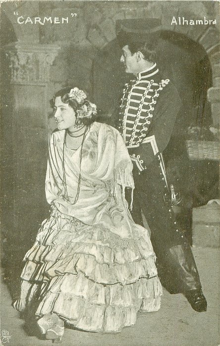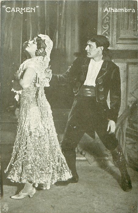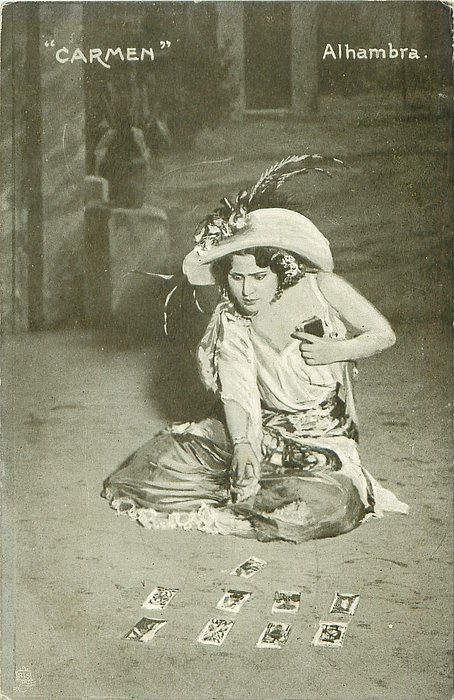 u/b,grey-brown, UN MOT A LA POSTE, (DEPOSE) , come with back advert for CHICOREE ARLATTE & CIE, same images, English back THEATRICAL SOUVENIR 1201 CARMEN, ALHAMBRA