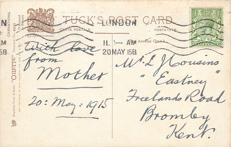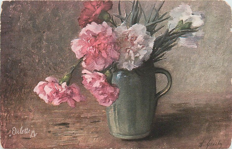 OILETTE, PROCESSED IN BAVARIA (come covered by filigree during World War I), listed in 1914 Postcard Catalogue