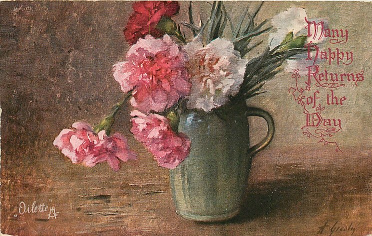 comes opt. in red MANY HAPPY RETURNS OF THE DAY donated by Don Richards