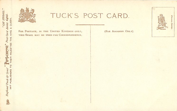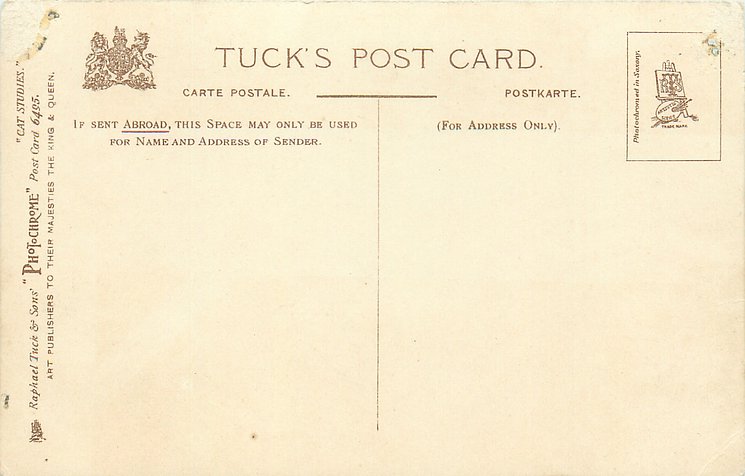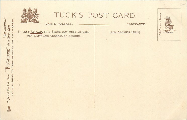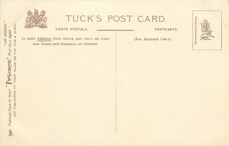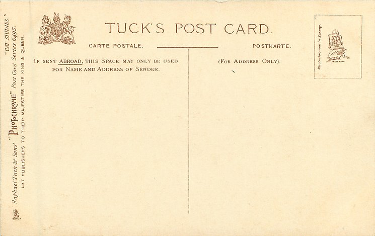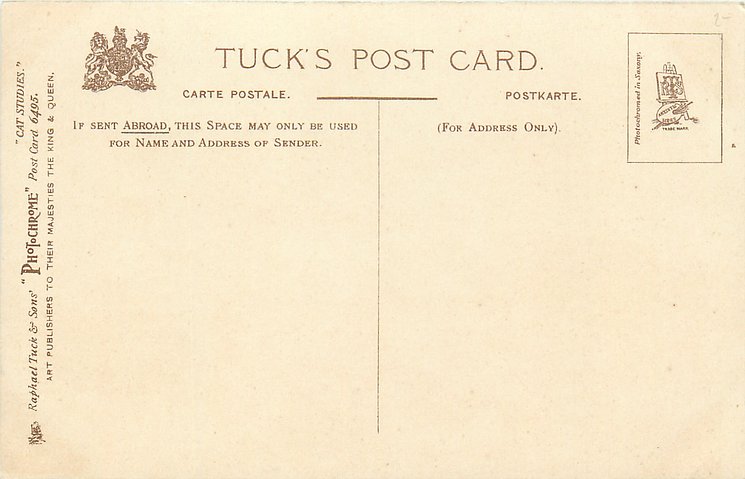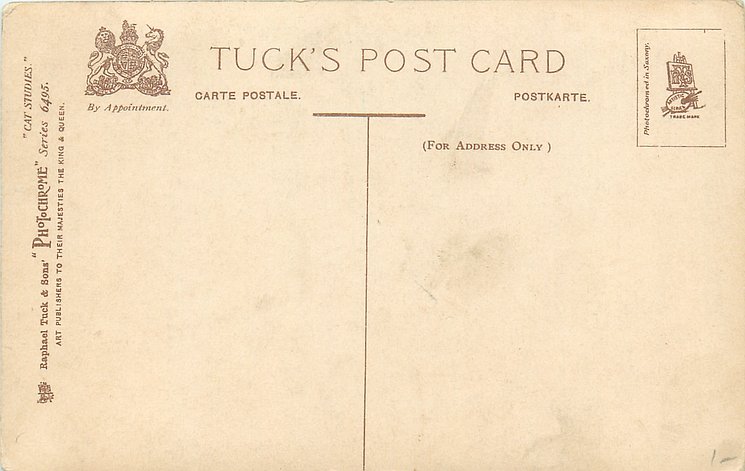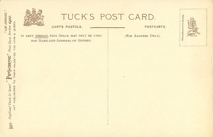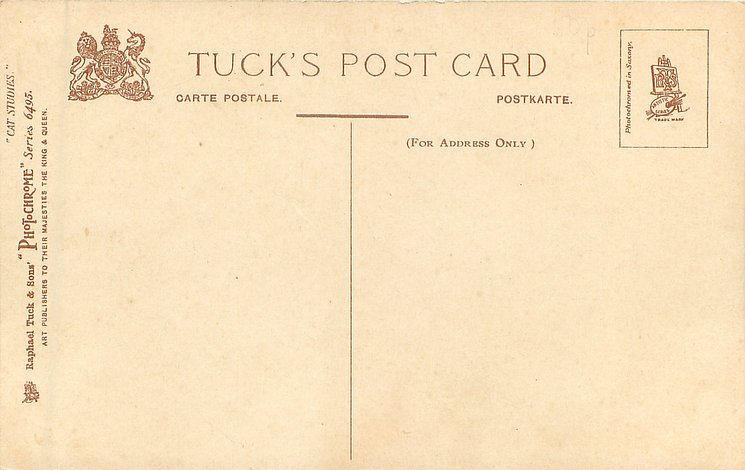 same basic image (2 cats left) comes as Tuck Ephemera greeting card (KING & QUEEN, UNITED KINGDOM, Christmas & New Year)