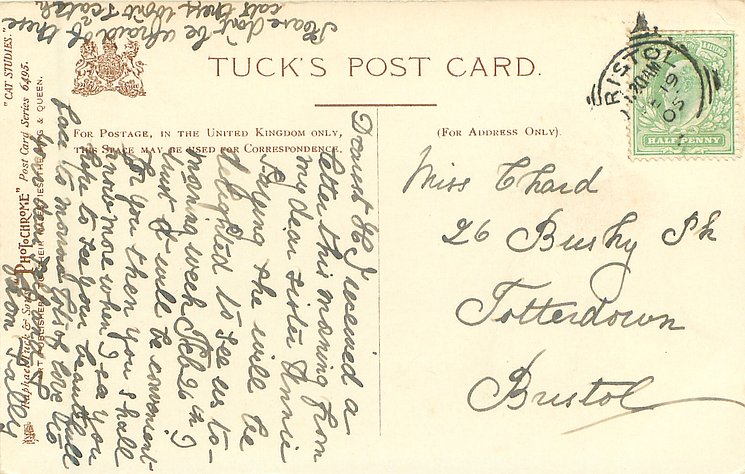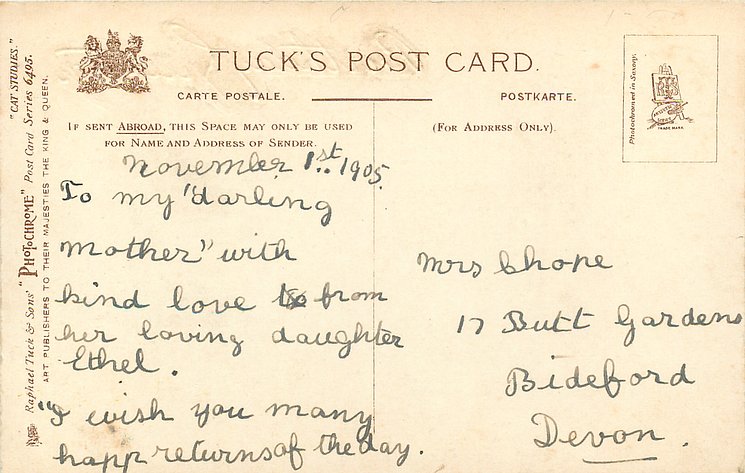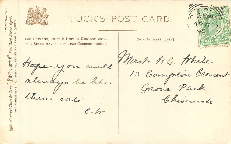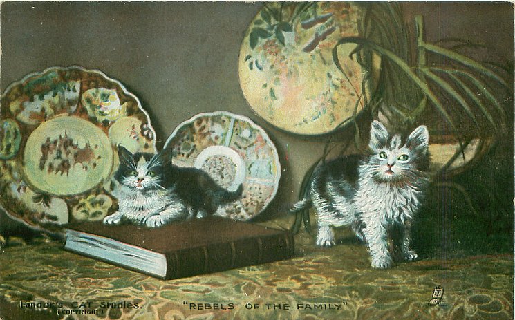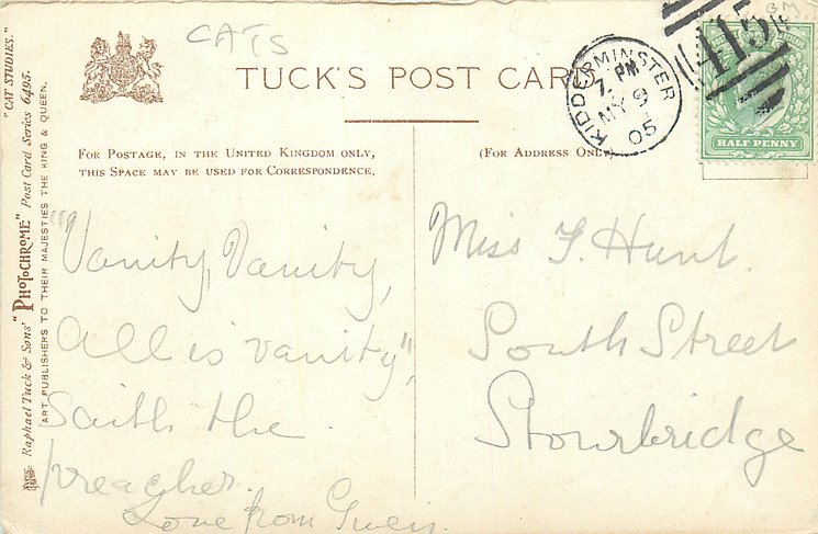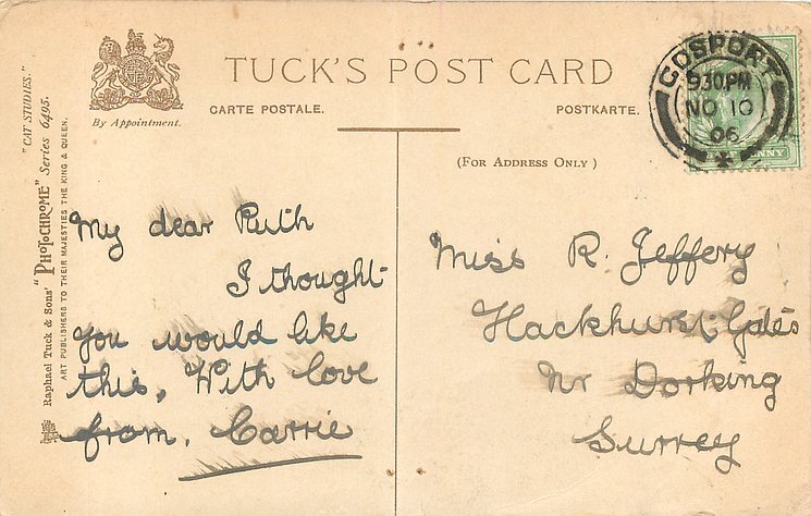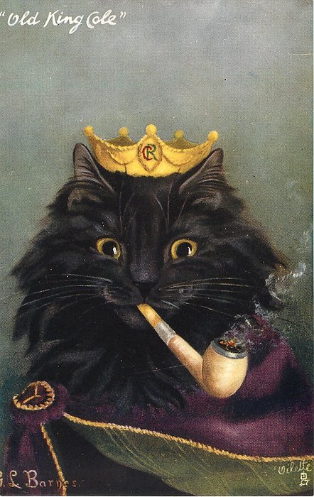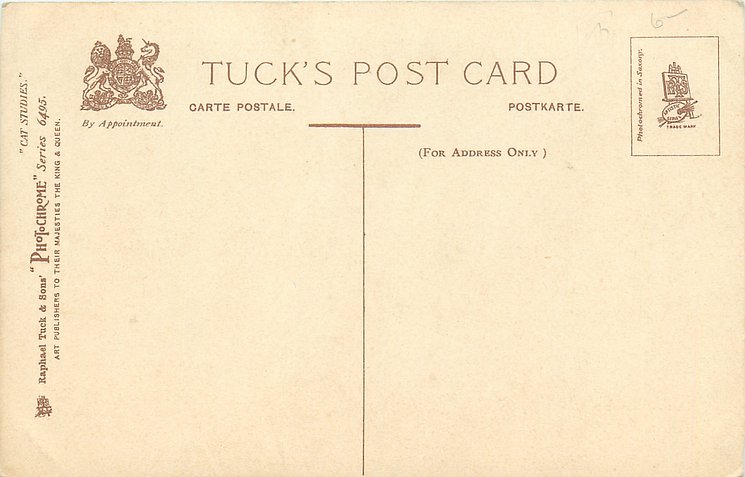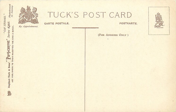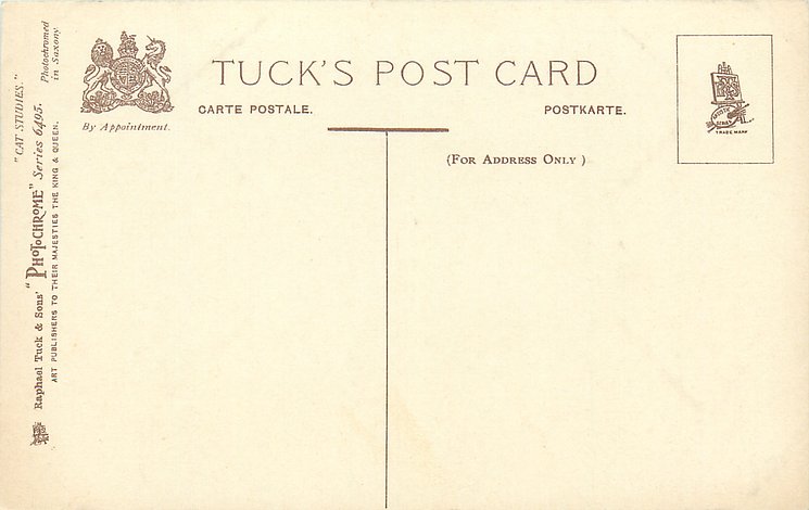 same basic image (2 cats left) comes as Tuck Ephemera greeting card (KING & QUEEN, UNITED KINGDOM, Christmas & New Year)
