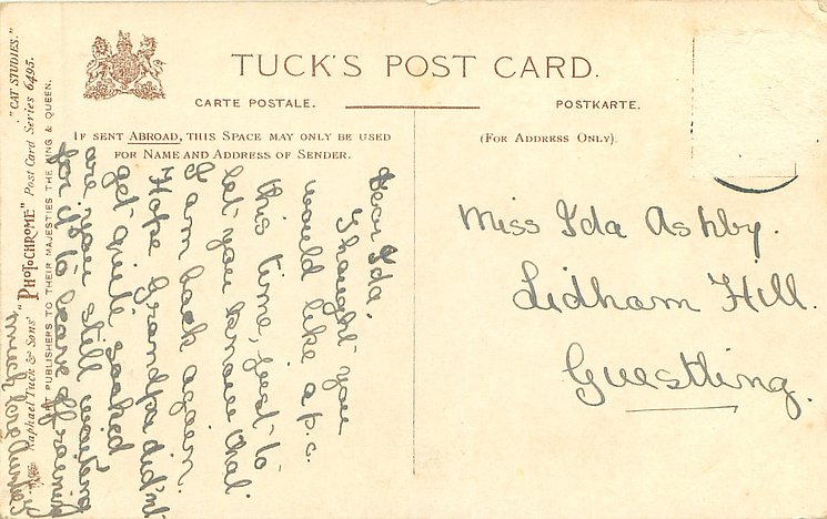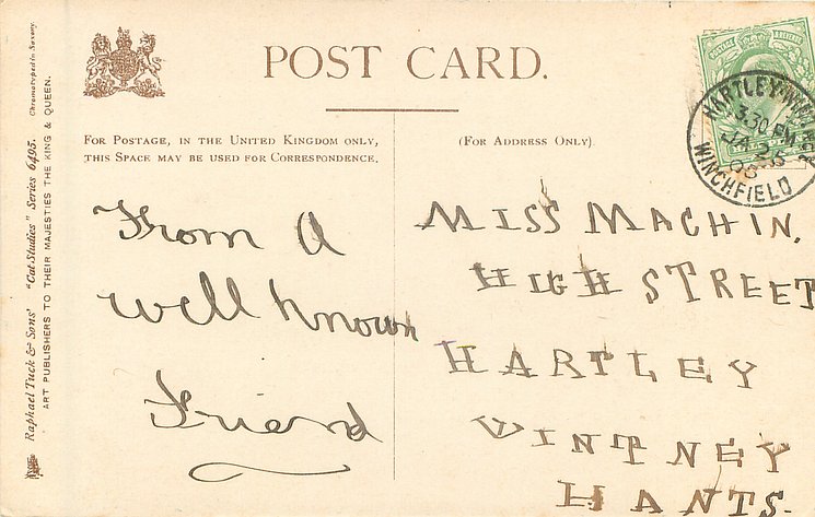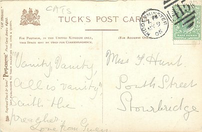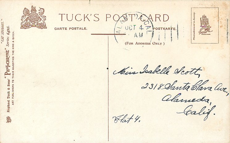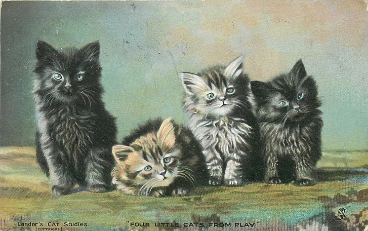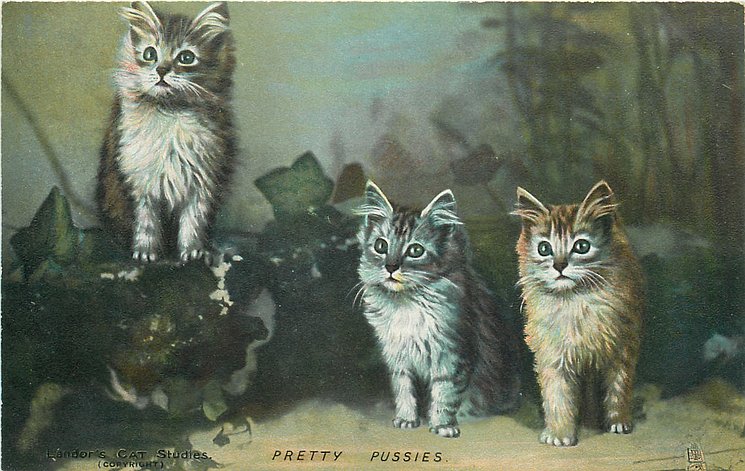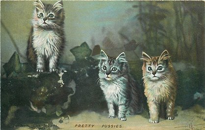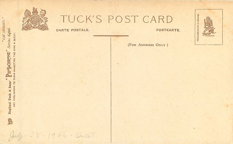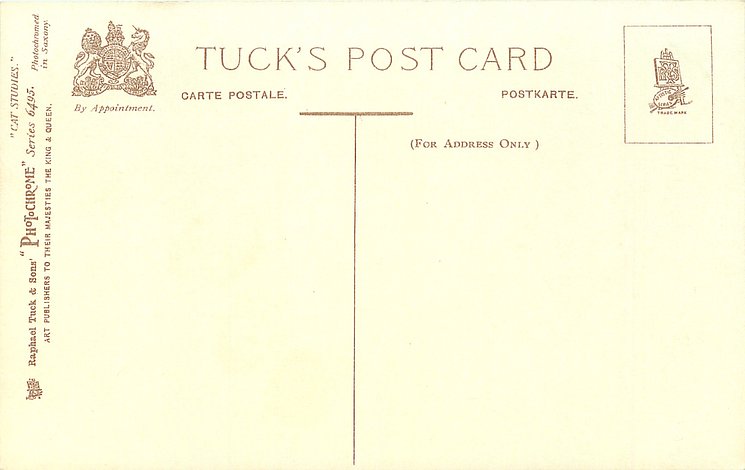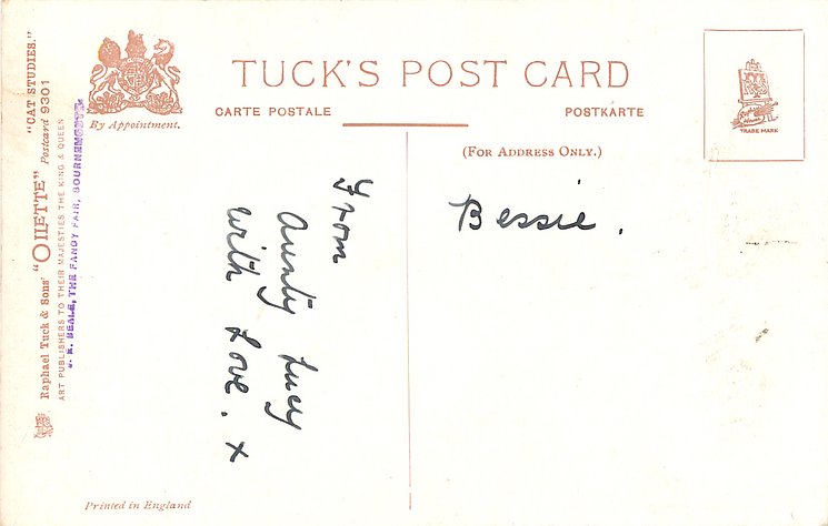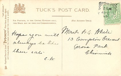 OILETTE, PRINTED IN ENGLAND, listed in 1908/1909 & 1911/1912 & 1912/1913 POSTCARD Catalogue as PUSSY IN FAIRYLAND & as CAT STUDIES