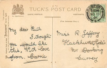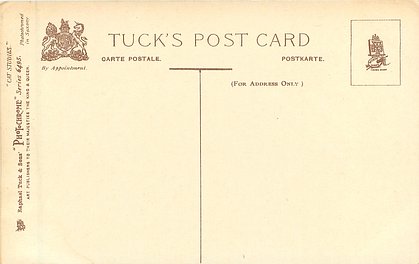 PHOTOCHROME, come CHROMOTYPED, listed in 1908/1909 & 1911/1912 & 1913/1914 Postcard Catalogues, or CHROMO SAXONY, 6 backs, most of these images come with French backs & titles, SERIE 252 & 409, made in SAXONY or PHOTOCHROMED IN SAXONY (in stamp box),come in ART sets 862-865 & REAL PHOTOGRAPH 5089/93 & 7006/7007 SAPPHIRE