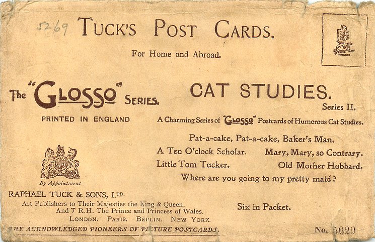 GLOSSO, listed in 1911/1912 & 1913/1914 Postcard Catalogues, identical images & numbers PUSSY IN FAIRYLAND
