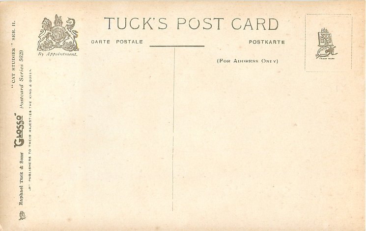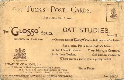 OILETTE, PRINTED IN ENGLAND, listed in 1908/1909 & 1911/1912 &1913/1914 Postcard Catalogues as PUSSY IN FAIRYLAND, listed in TUCK'S TRAVELOGUES (USA?1905)