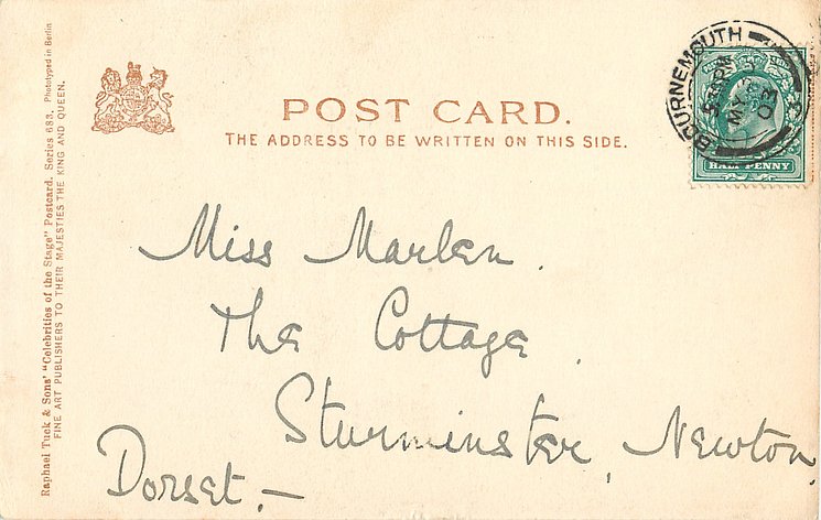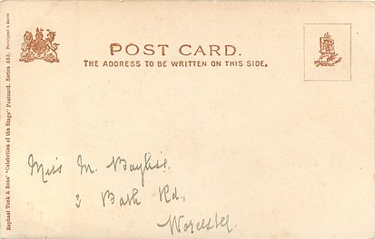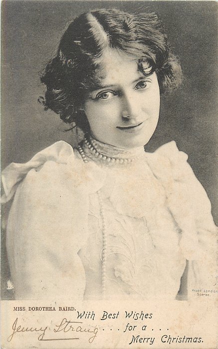 comes opt. at front base WITH BEST WISHES FOR A MERRY CHRISTMAS Dorothea Baird was Title Role in "Trilby " Haymarket Th. London 1895;
