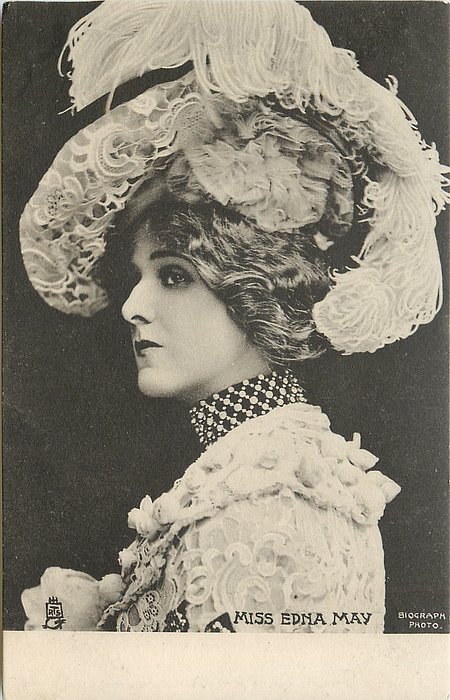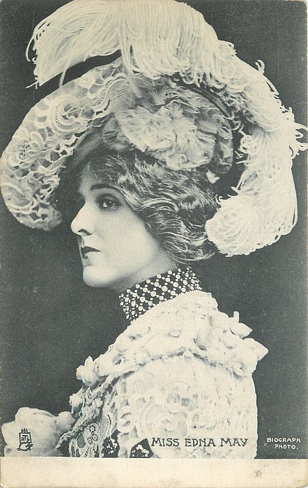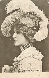 Edna May 1878 Syracuse, N.Y -1948 Switzerland) Was in "Kitty Grey" Musical Comedy Apollo Th. London 1901 (220); 1895 Married Fred Titus div.1904 Then Married Millionaire Oscar Lewisholm 1907 div. 1917; & then retired. don 1901;