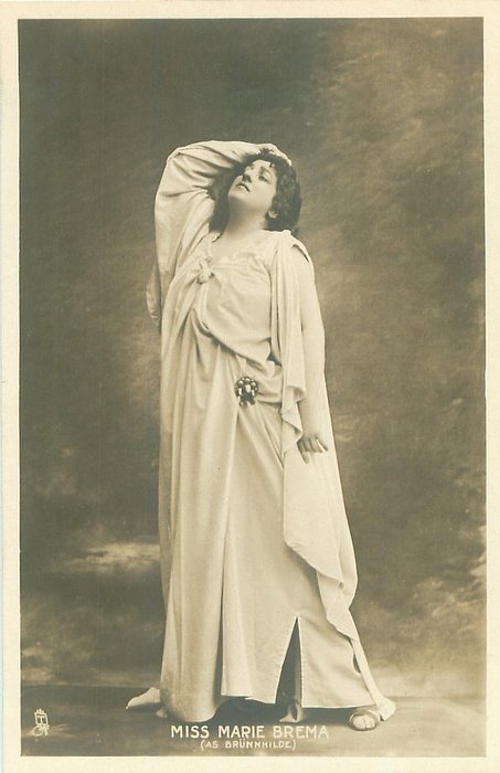 comes unnumbered with plain back & as P 1024 & G 1024 Marie Brema (1856 Eng.-1925 Eng.) a Mezzo- Soprano sang as Brunnhilde from "Gotterdammerung" & "Die Walkure" Sang at Metropolitan Opera House 1896, 1899;