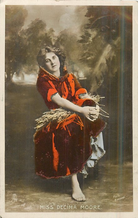 coloured, PHOTO BASSANO Decima Moore (1871 Brighton-1964 London) was in Light Opera " The Rose of Persia" 1899. and then in "Florodora" 1900-01 taking over from Kate Cutler.