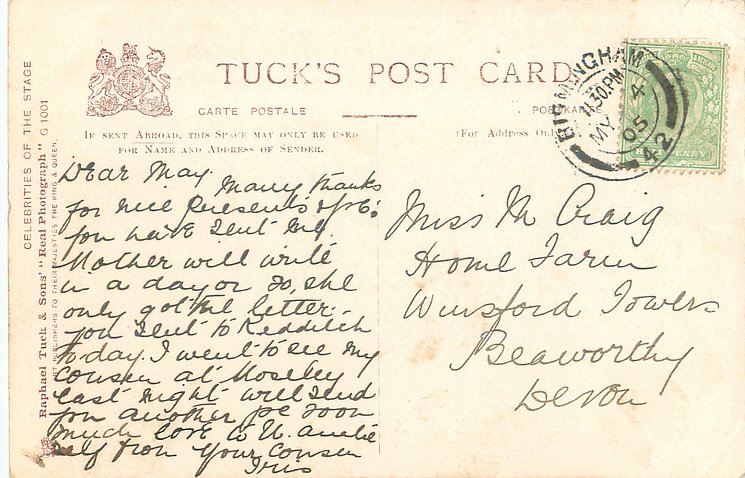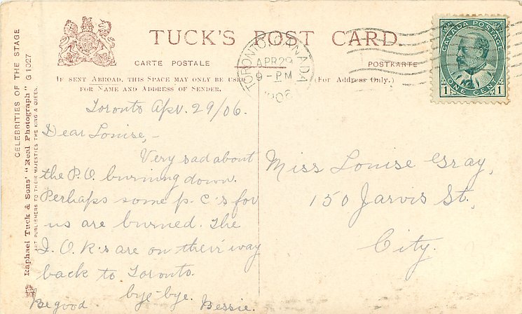come glossy Maude Fealy ( 1883 Memphis Tenn- 1971 died in Motion Pictures Country Home ,Calif.) Toured Eng. with William Gillette in Sherlock Holmes from 1901-2; Henry Irving's Co. 1902-05 & USA by 1907.