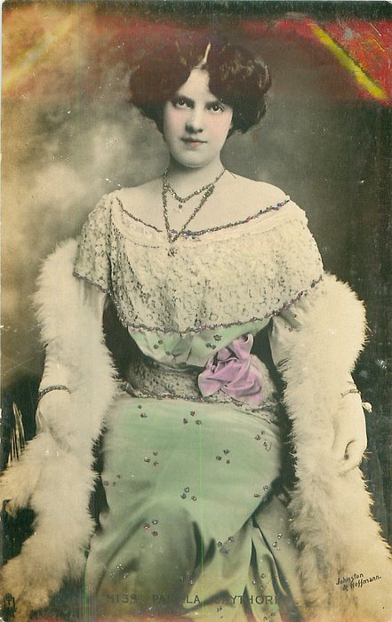 PHOTO JOHNSTON & HOFFMANN hand-coloured & glittered Pamela Gaythorne as Jane in " Couisin Kate" Haymarket Th. London 1903 & in NYC Hudson Th. (44)