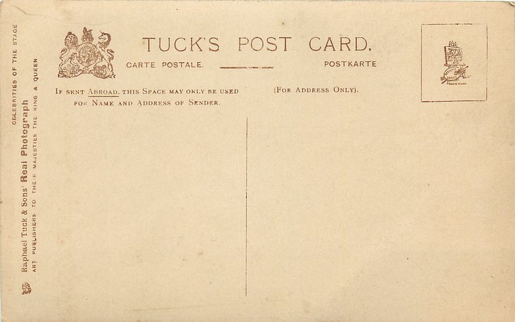 REAL PHOTOGRAPH, come hand coloured and with glitter. Cards in this set have prefix G and number on back or front of card. Cards with number and suffix G on front are recorded in set CELEBRITIES OF THE STAGE (i.n. 1000-1149G) .