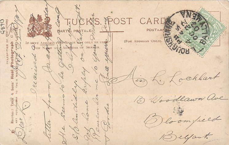 hand-coloured Millie Legarde was Winnie in "A Girl from Kays" Musical Comedy at Apollo Th. London 1902 and then at Comedy Th. London 1903 (432) ;