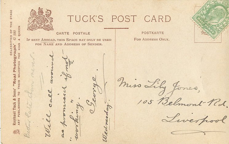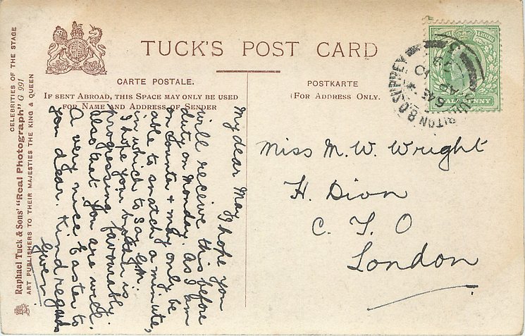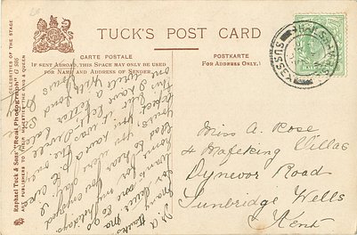 PHOTO JOHNSTON & HOFFMANN, A HAPPY NEW YEAR, same image P967 Blanche Stocker (1885 Bombay, India--1950) in "The Girl on the Film" Gaiety Th. London 1907 (303)