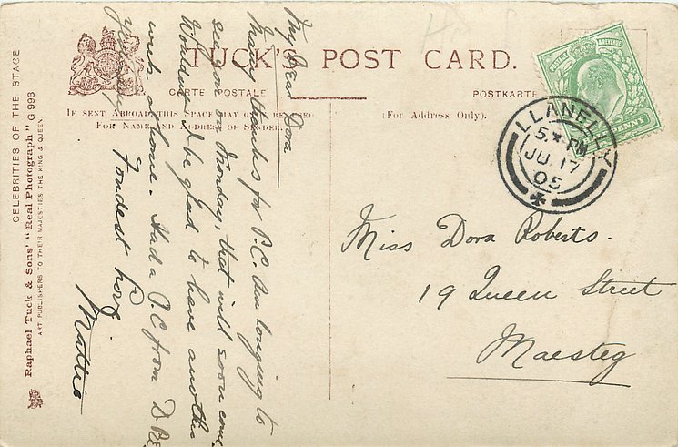hand-coloured Nora Kerin (1883 London-1970) was in "The Prince and the Beggar Maid": Lyceum Th. London, 1908 (82)