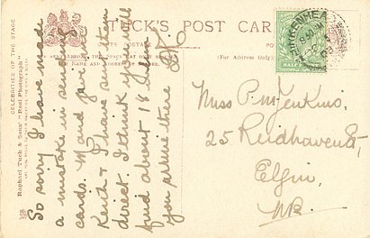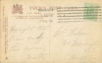 Maudi Darrell (1882 London- 1910) A Gaiety Girl and in Vaudeville. Married John Bullough a rich mill owner 1909 & died 1910 of Appendicitis Complications.