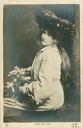 seated, facing left, looking back over her shoulder Iris Hoey (1885 London -1979 London) She married Actor Cyril Raymond. was Miranda in "The Pearl Girl" Shaftesbury Th. 1913 (254)