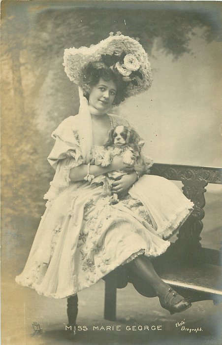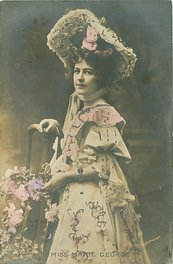 PHOTO BIOGRAPH, -coloured & glittered, same image G947 Marie George (1879 N Y--1955 N.Y.) was Cissie in "The Babe of the Wood" Drury Lane London 1907