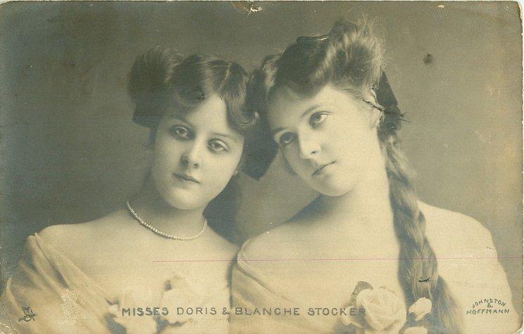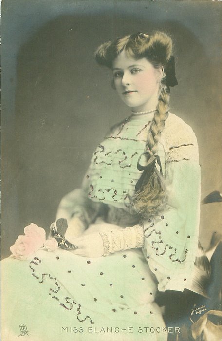 PHOTO JOHNSTON & HOFFMAN, hand-coloured & glittered, same image G967 Blanche Stocker (1885-Bombay, India-1950) was Viola in "The Girl on the Film" Gaiety Th. London 1907 (303) and May in the "The Sunshine Girl " Gaiety Th. London 1912 (336)