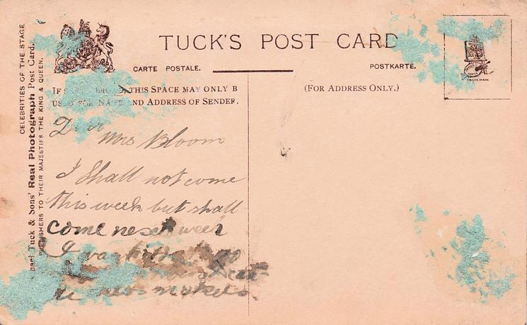 hand-coloured Florence Dudley was in "The Orchid" Gaiety Th. 1903 (559) was a Piano Player & Sung in Music halls and then was murdered in Taxi 1912 by man who was then hung for his crime .