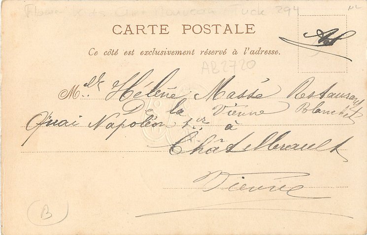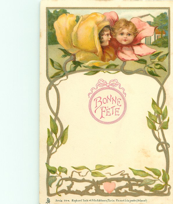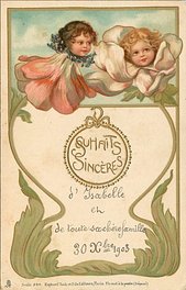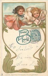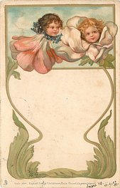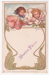 gilt, u/b, UN MOT A LA POSTE, (DEPOSE) two flower faces set above nouveau design of foliage