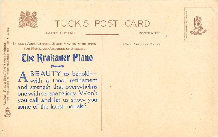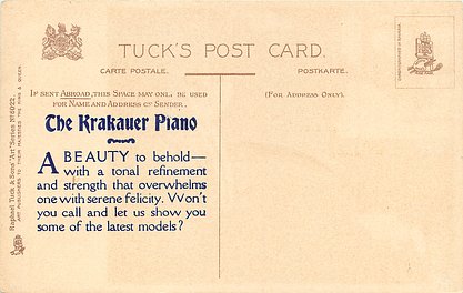 comes with THE KRAKAUER PIANO ad on back, two styles