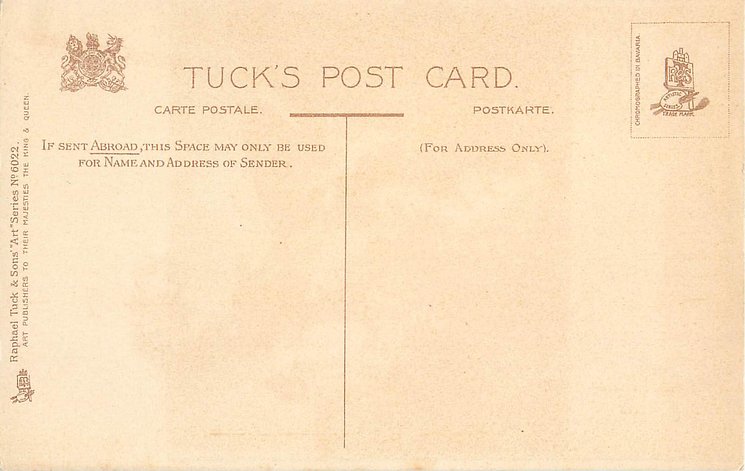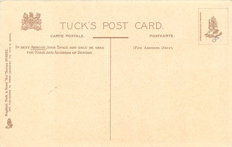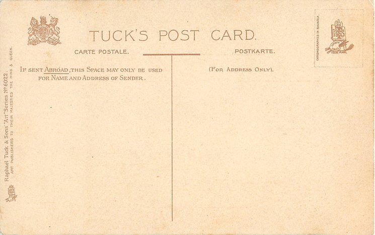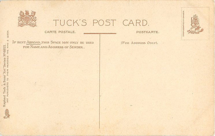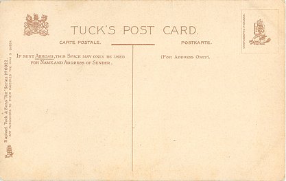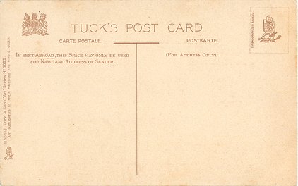 OILETTE. with or w/o PRINTED IN ENGLAND or PRINTED IN THE UNITED KINGDOM with or w/o COPYRIGHT LONDON, come with blue IN DICKENS LAND lower left, listed in 1911/1912 & 1913/1914 &1930 POSTCARD Catalogues & in 1932 ART SERVICE Catalogue, listed in TUCK'S TRAVELOGUES (USA?1905)