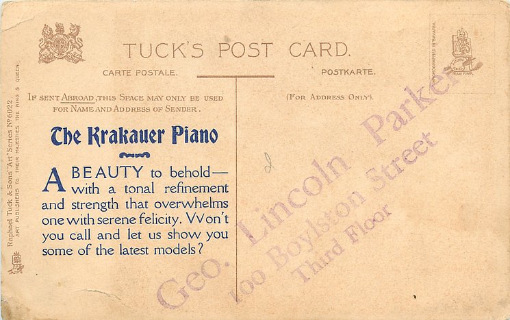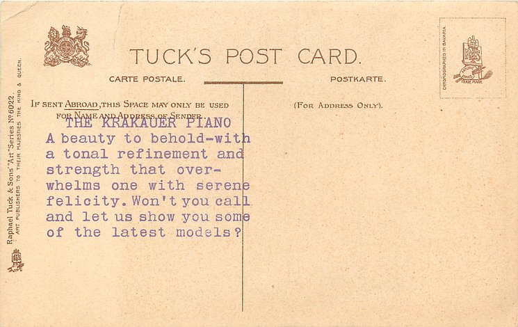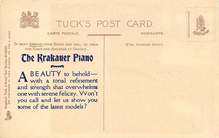 comes with THE KRAKAUER PIANO ad on back