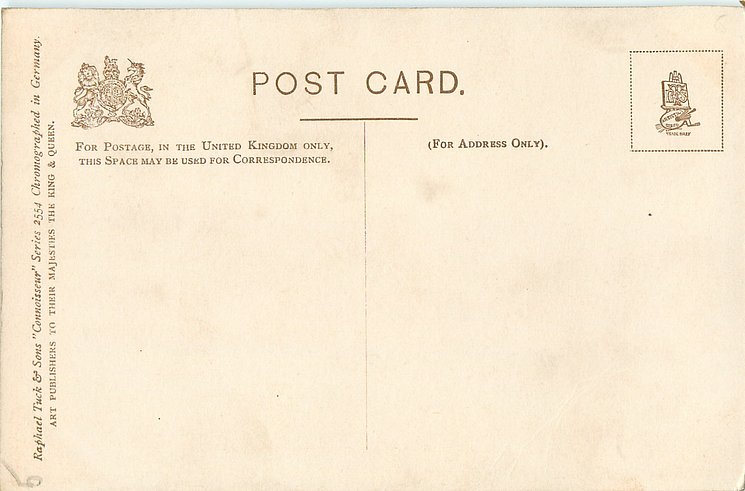 CONNOISSEUR, CHROMOGRAPHED IN GERMANY, 2 backs, listed in 1904 postcard Catalogue