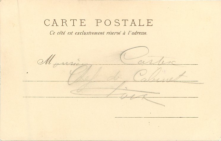 u/b, grey, UN MOT A LA POSTE (DEPOSE), come hand-coloured, come opt. in black on back NOUVELLES GALERIES MATHIAUX FRERES 8 & 10 RUE ALLIER MOULINS (ALLIER) or on front in black LA MAISON JEAN BARG PLACE ST-PIERRE, VANNES VIENT DE RECEVOIR SES ASSORTIMENTS D'ETE, see Booth and Lund
