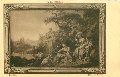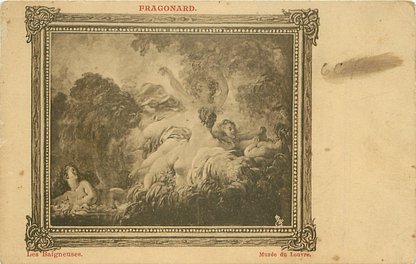UN MOT A LA POSTE, (DEPOSE), same image & number, German/International back 3001, COLLECTION ALTER MEISTER AUS DEN FRANZOSISCHEN GALERIEN with inscription, front title & artist in French