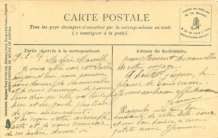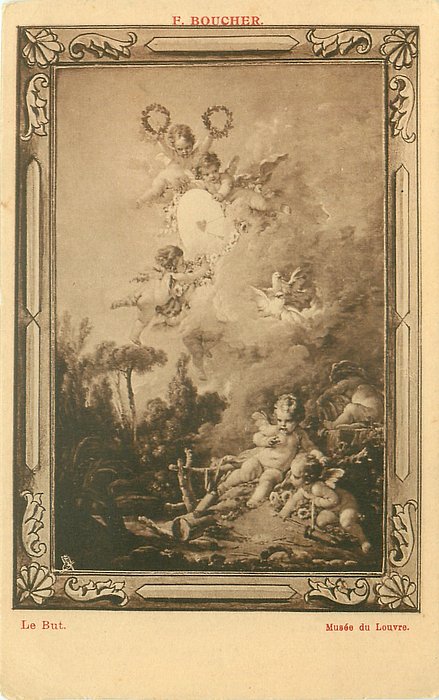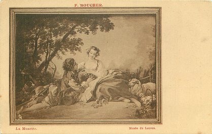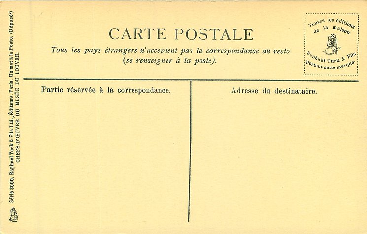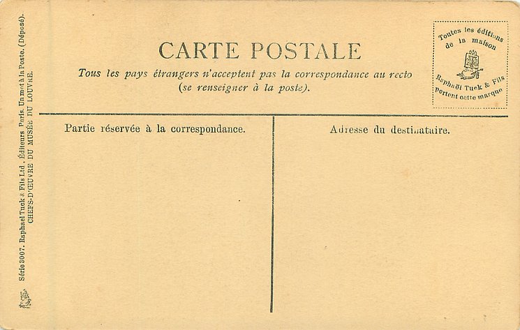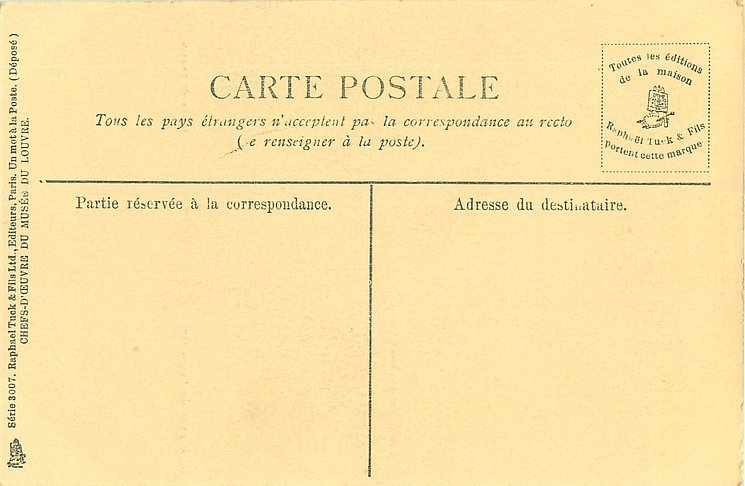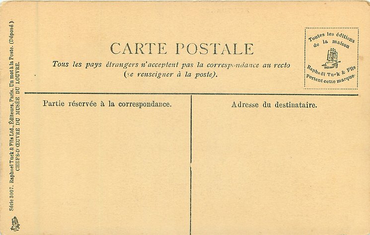 brown/purple,UN MOT A LA POSTE, (DEPOSE), same image & number, German/International back 3007 COLLECTION ALTER MEISTER AUS DEN FRANZOSISCHEN GALERIEN with inscription,front title & artist in French