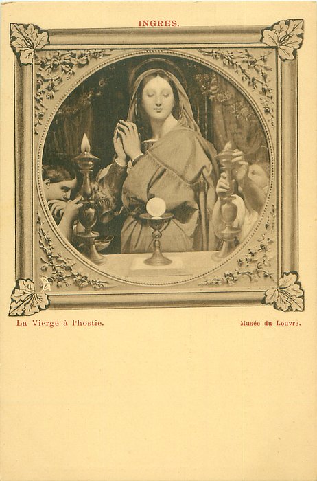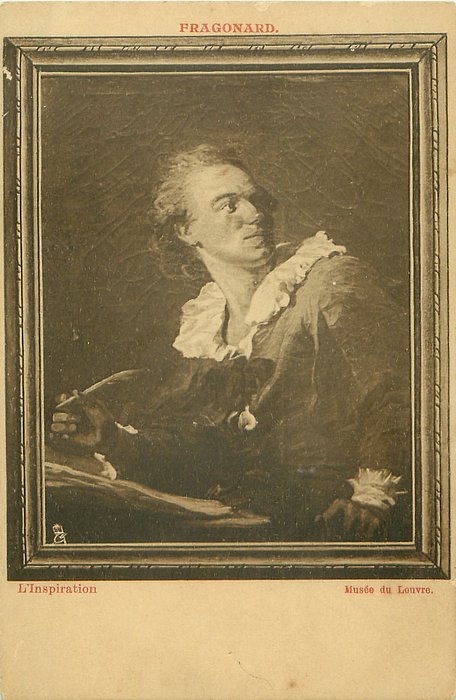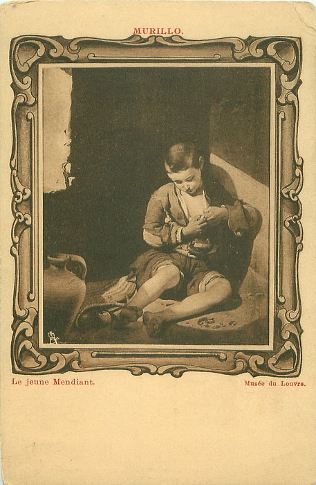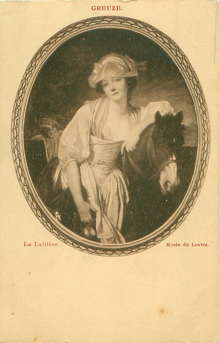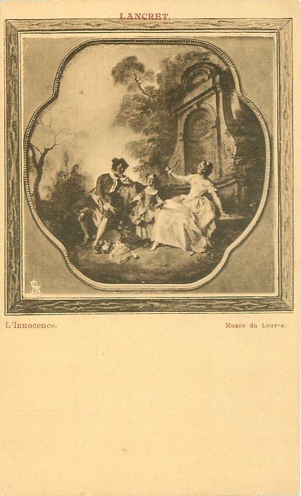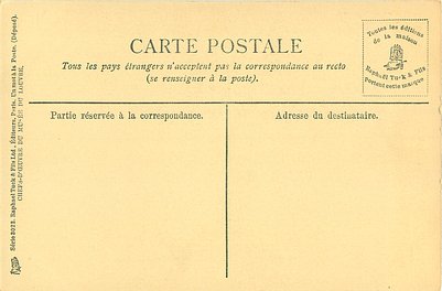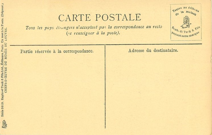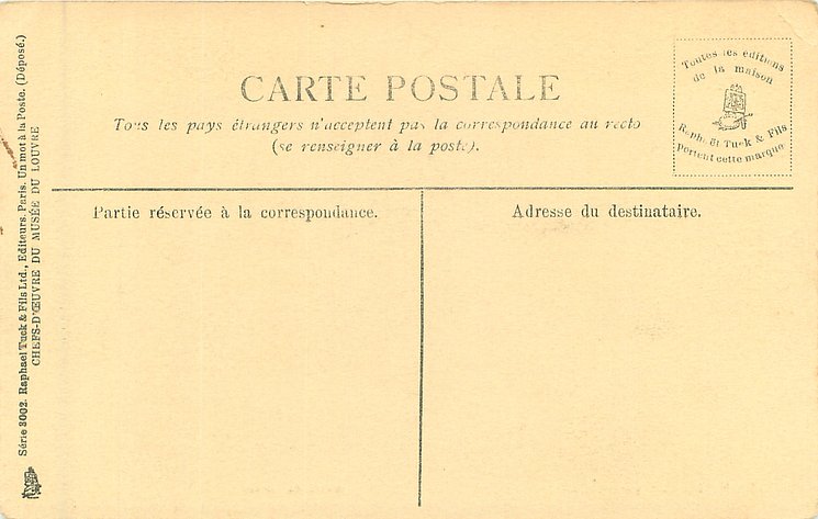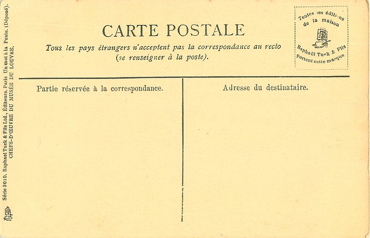brown/purple,UN MOT A LA POSTE, (DEPOSE), same image & number, German/International back 3019 COLLECTION ALTER MEISTER AUS DEN FRANZOSISCHEN GALERIEN with inscription,front title & artist in French