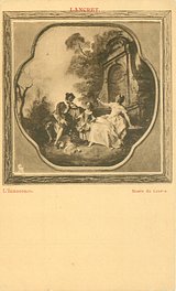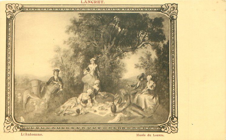 brown/purple,UN MOT A LA POSTE, (DEPOSE), same image & number, German/International back 3008 COLLECTION ALTER MEISTER AUS DEN FRANZOSISCHEN GALERIEN with inscription,front title & artist in French