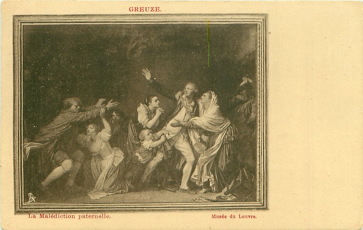 brown/purple,UN MOT A LA POSTE, (DEPOSE), same image & number, German/International back 3005 COLLECTION ALTER MEISTER AUS DEN FRANZOSISCHEN GALERIEN with inscription, front title & artist in French