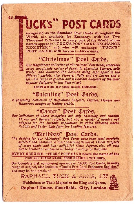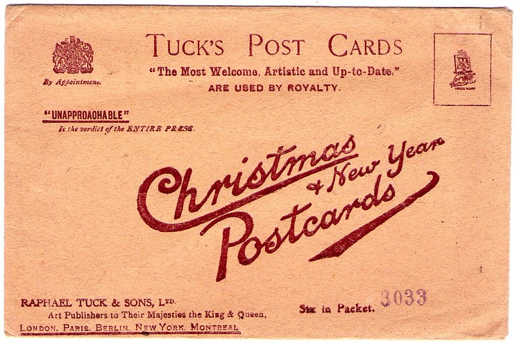 gilt embossed, CHROMOGRAPHED IN BERLIN, listed in RAPHAEL TUCK & SONS' LD. CHRISTMAS & NEW YEAR 1904/1905 catalogue