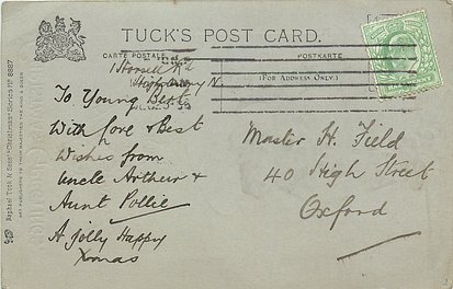gilt embossed, CHROMOGRAPHED IN BERLIN, listed in RAPHAEL TUCK & SONS' LD. CHRISTMAS & NEW YEAR 1904/1905 catalogue