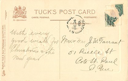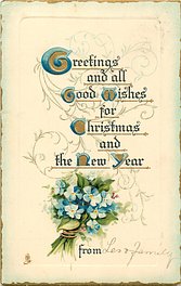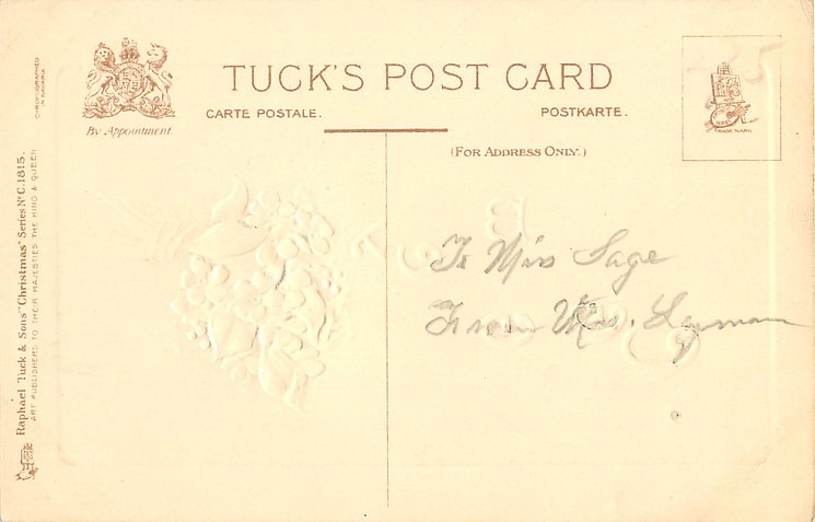 verse:- "MAY CHRISTMAS BRING YOU PLEASURE AND EACH HOUR GOLDEN BE, WITH OVER-FLOWING MEASURE OF WHAT IS BEST FOR THEE."