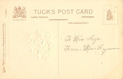 gilt embossed, CHROMOGRAPHED IN BAVARIA, listed in 1911/1912 Postcard Catalogue