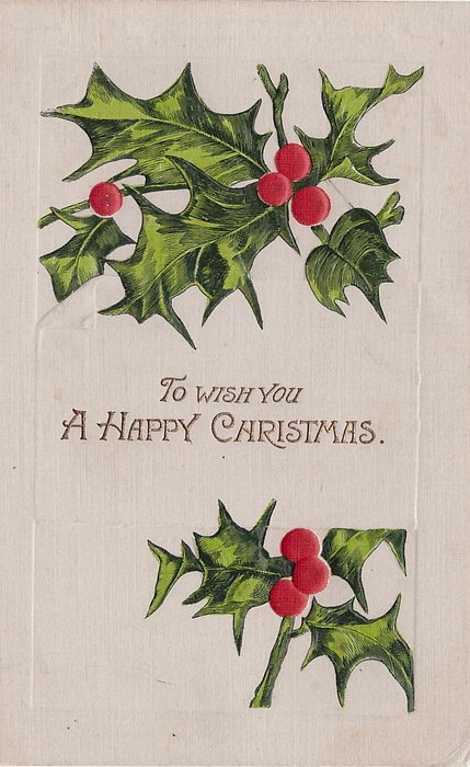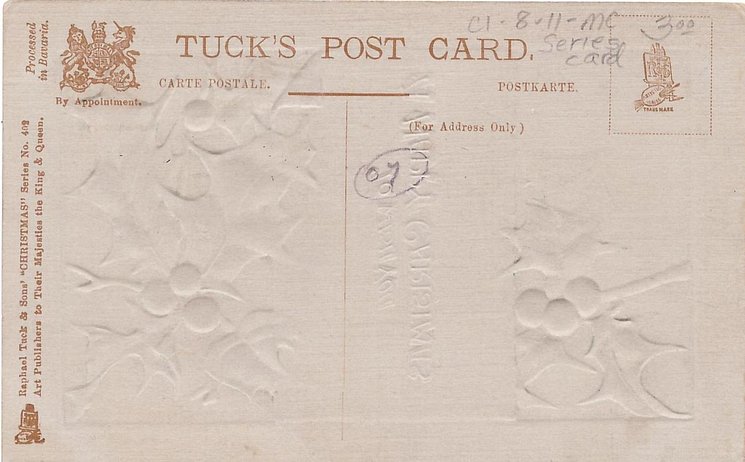 CHROMOGRAPHED IN BAVARIA (in stamp box), each card has a different spray of holly