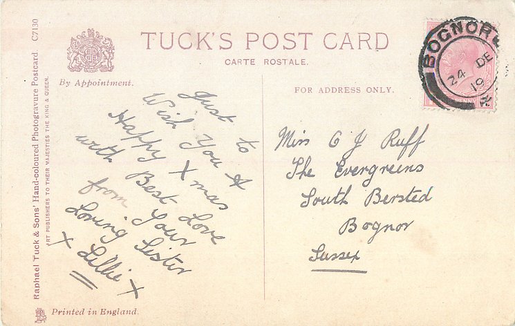 CARBONETTE, PRINTED IN THE UNITED KINGDOM, (COPYRIGHT) LONDON, sepia, same image & inscr. HAND COLOURED CARBONETTE C7129