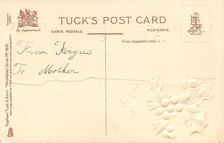 front inscription cont'd: FUN AND FROLIC AND ALL GOOD CHEER, A PERFECT CHRISTMAS, A GLAD NEW YEAR