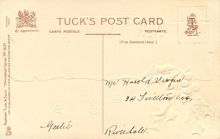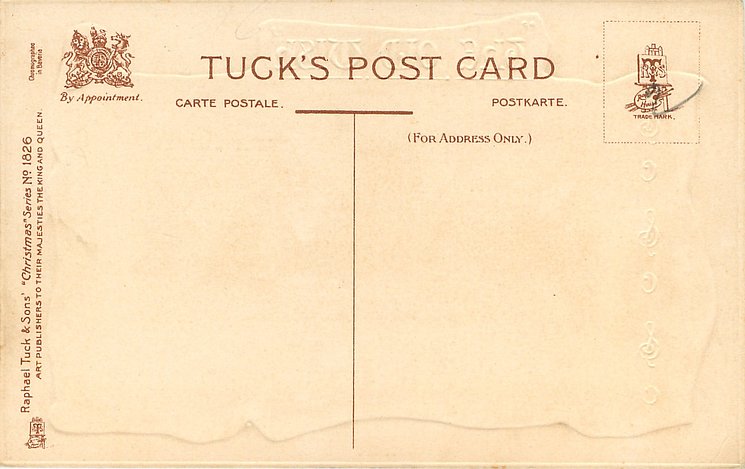 front inscription cont'd: HERE'S A LITTLE GREETING AND A WORD OF CHEER HAPPY BE YOUR CHRISTMAS, SWEET THE COMING YEAR