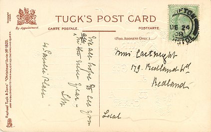 verse:- A LITTLE TOKEN JUST TO SAY ALL JOY WITH YOU ABIDE, ALL PLEASURES WING THE GOLDEN HOURS OF HAPPY CHRISTMAS-TIDE.