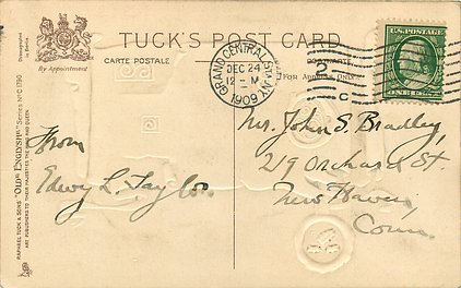 CHROMOGRAPHED IN BAVARIA, same image CHRISTMAS 8054, HUMEROUS, HERE'S A HEALTH 1305, French back A VOTRE BONNE SANTE 433, listed in RAPHAEL TUCK & SONS' LD. CHRISTMAS & NEW YEAR 1904/1905 catalogue