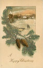 2 backs, gilt embossed, illuminated letters, PRINTED IN SAXONY, come A MERRY CHRISTMAS on front, come with packet showing sale in canada in HUDSON BAY STORES, same images NEW YEAR 607