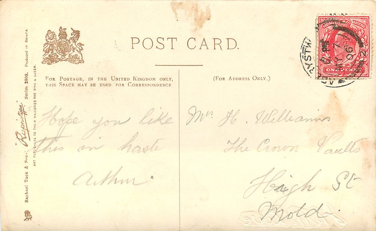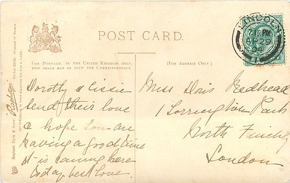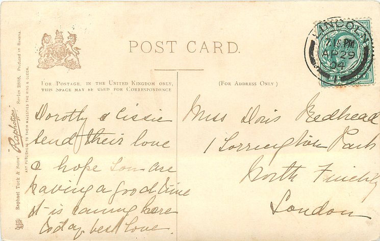 grey/green or sepia, RAPHOTYPE, PRODUCED IN BAVARIA, same images 2907, listed in 1904 POSTCARD Catalogue